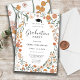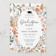 Um convite de festa de formatura primavera na moda para flores curvas novo em cores em negrito de laranja e cor-de-rosa com folhas verdes. Se você quiser alterar o estilo de fonte, cor ou posicionamento de texto, basta clicar no botão "Personalizar Mais" e usar a ferramenta design simples.
