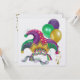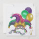 Um convite à relva de pérolas quadradas com uma imagem festiva de Mardi Gras de balões verdes, roxos e dourados, um grande chapéu de pimenta colorido e um balão de máscara, e miçangas verdes e roxas. As costas têm uma imagem de uma fita de enrolação dourada, um balão verde com uma fita verde, e um balão roxo. Ver caixa de favor correspondente, etiqueta de favor, saco de presente grande e vinheta de vinilo cortada por medida. Veja toda a coleção do Convite Mardi Gras nos CONVITES | Seção Convites.