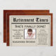 Uma maneira divertida de convidar amigos e convidados para uma festa de aposentadoria. Este convite oficial de aparência de jornal pode ser personalizado com a imagem, o nome, a empresa, o escritório, os anos de serviço e as informações de janto de festa ou recepção do aposentado. Apresenta um artigo com aparência de jornal com manchetes e legendas como as notícias mais importantes de hoje.