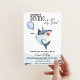 Um tema divertido de tubarão com aquarela, esporando um chapéu de festa e segurando um balão grande número três. Bonita diversão e moderna. Excelente para os seus filhos no terceiro aniversário da piscina de verão.