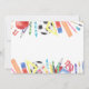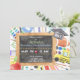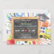 Anúncio da cerimônia de formatura primária do quadro de ensino básico, brilhante e colorido. Personalize facilmente as informações do convite para a formatura do seu filho. Modelo de convite de graduação editável com classe de boné de formatura e data. A design apresenta material bonito para escolas de aquarela, ônibus escolar, arte e esporte.
