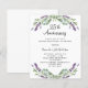 Um fundo branco decorado com flores lavandas e verde de eucalipto. Personalize e seus nomes e detalhes. 1 folha = 1 convite impresso de borda a borda.