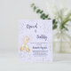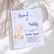 Um convite moderno, na moda e glamouroso para um Chá de panela de bolinho. Um fundo lavanda, colorido violeta, com bolhas, um par de flautas, óculos. O nome é escrito com um moderno estilo escrito à mão. Personalize e adicione os detalhes da sua festa. 1 folha = 1 convite impresso de borda a borda.