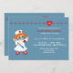 Um convite para um formando de enfermagem. O fundo azul sólido apresenta uma enfermeira bonita segurando um termômetro. Uma linha de batimento cardíaco atravessa o topo com um coração vermelho que diz "RN".O cartão é fácil de personalizar com seu texto, fonte, cor da fonte e escolha de seis tipos de papel.