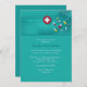 Um convite à graduação teal contendo cápsulas coloridas de medicamento e uma cruz médica. (FP)<br/>() O cartão é fácil de personalizar com o seu texto, fonte, cor da fonte, opções de forma de papel e escolha de seis tipos de papel.<br/>() Não exatamente o que você está procurando? Todos os nossos produtos podem ser personalizados para atender às suas necessidades sem custos adicionais.<br/>() Basta entrar em contato conosco em askpixieprints@aol.com.<br/>() Coordenando os produtos disponíveis: Apenas nos pergunte!