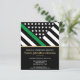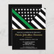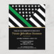 Esta design apresenta uma bandeira militar com listras pretas e brancas, e uma fina faixa verde de linha também. O texto dourado fica acima de todos os detalhes do partido para o sargento graduado, capitão, soldado, tenente ou festa de formatura geral.