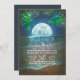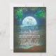 Convite romântico e elegante para casamento, com palmeiras, noite, lua, mar ou oceano e cordas de luzes. Convite perfeito para praia para o casamento romântico das luzes cintilantes.