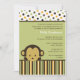 Este design de dois lados, divertido e moderno, é o convite perfeito para o seu chá de fraldas ou festa de aniversário de macacos. O tema é excelente com o tema de berçários do macaco Mod Pod Pop. Projetado por Bean Sprout Studio e vendido por Zazzle.