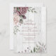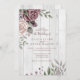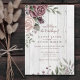 Um elegante design de aquarela de grandes rosas em tons de rosa claro e rosa poeirento sobre um fundo branco de madeira rústica. A parte traseira do cartão tem o mesmo fundo com um pequeno arranjo floral no centro. Você pode personalizar as fontes da maneira que quiser ou adicionar sua própria mensagem especial. Este convite é parte de uma bela suíte de casamento que pode ser totalmente personalizada.