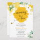 Convite para chá de fraldas, com tema de abelhas, honrando a mamãe! Design apresenta pentes de alevins de aquarela, florais brancos e verde com ilustrações adoráveis de abelhas. Personalize com suas informações ou clique em "Clique para personalizar mais" para editar estilos de fonte, tamanho e cores.