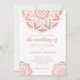 Um belo convite para o casamento, com um rosa de ouro, mandala design e rosa de cor-de-rosa. O cheio personaliza todos os detalhes para tornar o dia especial o melhor possível.