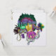 Pearl shimmer quadrado com uma imagem festiva de Mardi Gras de uma morada de penas, máscaras de penas, um chapéu fuchsia sequenciado, miçangas, roxo, verde e balões dourados, e dois corações ametistas roxos. As costas têm uma imagem de fita de enrolação dourada, um balão verde com fita verde, e um balão roxo. Veja o envelope correspondente, o saco de favores, a etiqueta de favor, os sacos de presentes, a etiqueta, o adesivo redondo, o vinil autocolante e o papel de embalagem. Veja toda a coleção do Convite Mardi Gras nos CONVITES | Seção Convites.
