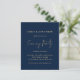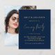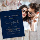 Um valor para o alternativo do ORÇAMENTO em tamanho menor de 4,5 x 5,6" de semirbrilho de 110 lbs, que é de espessura semelhante a um cartão postal (no entanto, não é adequado para uso como cartão postal). POR FAVOR, OBSERVE QUE HÁ UM convite por folha. Marinho De Script Orçamental Foto Dourada Convite De Casamento À Noite. Um estilo manuscrito para o Partido da Noite e o resto do texto que você pode personalizar facilmente. As cores do texto e do plano de fundo podem ser alteradas para qualquer opção ou sua escolha por meio da opção personalizar mais.