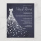 Diamantes brilhantes brancos, brilhantes, brilhantes, com vestido de noiva em um fazer azul escuro da meia noite, marinho de fundo do quadro negro, um simples barato elegante e moderno mudança de planos chá de panela. +++++++++ LEIA ISTO ANTES DE COMPRAR! Este é um cartão de casamento de barato orçamentário impresso em uma folha de papel (cada folha tem um cartão). +++ Para obter a melhor qualidade de preço, nosso conselho é escolher o tipo de papel Semi-Gloss (é espesso o suficiente para ser usado para papelaria) +++ Se você precisar de envelopes, escolha a OPÇÃO ENVELOPE. ++ Verifique duas vezes todas as informações e a ortografia do seu texto porque você receberá exatamente o que você vê - ninguém mais verificará nada antes de imprimir. +++ Esta placa foi projetada para o tamanho de 4,5" x 5,6". Caso você escolha outro tamanho do cartão e o texto saia da página, tudo precisa ser corrigido antes de adicionar o produto ao carrinho. Peça ajuda ao Serviço de Design ao Vivo.
