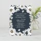 Um convite floral azul-marinho e branco que está tão ensolarado quanto um dia de verão. O fundo azul tem margaridas brancas na frente e uma faixa nítida no verso.<a href='http://www.freepik.com/free-vector/elegant-floral-wedding-card_960152.htm'>Concebida por Freepik (). </a>() A placa é fácil de personalizar com o seu texto, fonte, cor da fonte, opções de forma de papel e escolha de seis tipos de papel.<br/>() Não exatamente o que você está procurando? Todos os nossos produtos podem ser personalizados para atender às suas necessidades sem custos adicionais.<br/>() Basta entrar em contato conosco em heartfelthelper@gmail.com.<br/>() Coordenando os produtos disponíveis: Apenas nos pergunte!