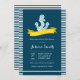 Convite para Chás de fraldas moderno com um fundo listrado de marinho, faixa amarela e âncora.