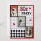 A popularidade da pantomima no final dos anos 1980 provocou o ressurgimento do triste palhaço Pierrot. Aqui está um encantador convite a um shimmer de pérolas de 5" x 7" com três imagens vintage da década de 1980; duas de Pierrot dançando com Columbine e uma de Pierrot dançando com outra mulher em uma cinza e padrão de estilo preto. Texto personalizável. Veja o envelope correspondente, a etiqueta de presente, o adesivo retangular e o papel de embalagem. Veja a coleção inteira de convites da Tubular 80s nos CONVITES | Seção Convites e Cartões.
