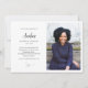 Este elegante convite memorial apresenta uma grande área fotográfica ao lado do nome do seu ente querido, realçado numa letra de escrita graciosa. As folhas esboçadas no fundo fornecem um sutil sussurro de beleza que permite que a foto e o nome tomem palco central. Adicione fotos adicionais, um poema, uma letra de música ou instruções simples aos seus convidados no verso, se preferir.