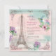 Um quadro antigo adorado com flores e a Torre Eiffel cria este convite romântico, feminino e adorável perfeito para chás de panela, comemorações de aniversário de mulheres, festas de aniversário e muito mais. (Fp)