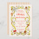 Este doce convite de aniversário tem um estilo desenhado à mão com cogumelos, teia de aranha com aranhas, folhas de outono e corações e estrelas ao redor da borda. O texto pode ser personalizado para se adequar ao que você precisar. Está sobre um fundo de listras pálidas e brancas com bonito quadro amarelo.
