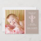 Blocos contemporâneos de cor suave realçam a foto de sua doce menina nesta design moderna para o batismo ou batismo de sua filha. Adorada com uma elegante cruz de rosa pastel, toda a sua informação de celebração está nas costas. Também disponível: