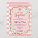 Meninas Baptism Convite para design de ouro branco rosa elegante com brilho falso. Na moda com rosas brancas.