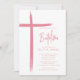 Este convite do Batismo cor-de-rosa moderno apresenta um design de cruz na moda, perfeito para celebrar este marco religioso especial. O esquema de cor rosa-pincelada adiciona um toque de feminilidade e graça ao convite, fazer-o ideal para a cerimônia de Batismo de uma jovem. O design simples, mas sofisticado, certamente impressiona os convidados e dá o tom para um evento memorável.
