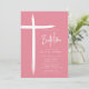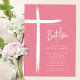 Este convite do Batismo cor-de-rosa moderno apresenta um design de cruz na moda, perfeito para celebrar este marco religioso especial. O esquema de cor rosa-pincelada adiciona um toque de feminilidade e graça ao convite, fazer-o ideal para a cerimônia de Batismo de uma jovem. O design simples, mas sofisticado, certamente impressiona os convidados e dá o tom para um evento memorável.