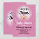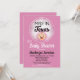 Este chá de fraldas engraçado apresenta um lindo rosto branco de bebê que diz "Made In Texas" em um fundo rosa. A imagem está na frente e atrás do convite.