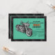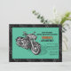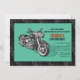Um convite masculino para o entusiasta do porco que está celebrando um aniversário. O fundo preto e cinza do piso dos pneus está sobreposto por um painel de cor, com uma motocicleta.O cartão é fácil de personalizar com seu texto, fonte, cor da fonte e escolha de seis tipos de papel.