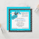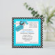 Na moda Sweet 16 convite de aniversário feito em bolinhas brancas e pretas divertidas, com um quadro de turquesa brilhante em torno de uma área de texto branca. Gráficos bonitos de uma chave de carro, em um anel de chave turquesa e um arco de tartaruga bonito, decoram o canto superior esquerdo do convite. Texto em preto e turquesa está pronto para personalizar para o dia especial de sua filha.