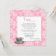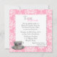 Convite elegante feito em uma cor damasco cor-de-rosa e branca, com uma área de texto em branco de borda redimensionada. Gráficos de uma linda xícara de chá de porcelana e um disco decoram o fundo esquerdo, do convite. Todo o texto é totalmente personalizável para atender às suas necessidades. excelente de convite para qualquer evento feminino.