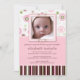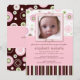 O design de doce cor-de-rosa e cacau, especialmente para a sua menina, faz um convite encantador ao batizado do seu filho.