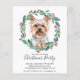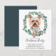 Convide amigos e família para a sua festa de Natal ou Feriado com este elegante aperitivo Natal yorkshire num cartão de design de coroa, e decor correspondente. Este cartão de Natal apresenta um cão a aquarela numa coroa verde e vermelha com sagrado e bagas. Personalize com todos os detalhes da festa de natal. Este convite de natal terrível de yorkshire será um favorito entre amantes de yorkie, amantes de cachorros e amantes de os animais. Visite nossa coleção para combinar cartões de natal terrier do yorkshire, decoração doméstica e presentes. COPYRIGHT © 2020 Judy Burrows, Black Dog Art - Todos Os Direitos Reservados. Convite para Natal de Terrier Dog de Yorkshire