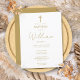 Este elegante cartão postal batizante de batismo dourado pode ser personalizado com as suas informações em tipografia quic. Projetado por Thisnotme©