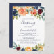 Este convite multicolorido elegante para batizar floral é perfeito para um batismo ou batismo moderno para bebês. A design apresenta buquês perfeitamente desenhados à mão de rosa, pincelado, amarelo, burgundy, vermelho, indigo e folhagem verde, inspirando beleza natural.