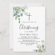 Celebre um marco precioso com este elegante convite batizante de meio verão. Mostrando um design botânico exuberante, ele apresenta uma lindíssima cor d'água, eucalipto e folhas verdes, criando um aspecto fresco e eterno perfeito para uma dedicação ao bebê.