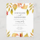 Convite para Festa de Casamento de Folhas de Outono com Orçamento. A cor e o tipo de letra podem ser alterados através do menu de edição. Você também pode alterar as cores do texto e do fundo de ambos os lados, se desejar. Uma opção de tamanho 4,5 x 5,6 polegadas com boa relação custo-benefício, padronizada para a opção semi brilho, que é recomendada para convites e tem uma espessura semelhante à de um cartão postal. A opção cetim é muito mais fina.