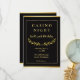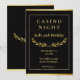 Celebre com estilo com este convite elegante de Casino Night preto e dourado, perfeito para aniversários marcantes, festas de pôquer e reuniões sofisticadas com tema de cassino. O design apresenta um fundo preto refinado emoldurado por uma borda dourada e detalhes de louro clássicos para um visual atemporal e sofisticado.