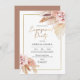 Delicar tons florais e naturais cor-de-rosa convite para noivado boêmico com uma falso moldura e cabeçalho de folha de ouro.