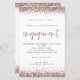 Convite para Noivado de Bordas Litter Douradas rosa. Um tamanho maior de 5,5" x 8,5" a um preço orçamentário, em um STOCK CARD SEMI GLOSS de 110 lb, excelente de convites, aproximadamente na mesma espessura de um cartão postal, ou um estoque LINEN elegante de 110 lb - para um luxo, ligeiramente mais fino, com um valor de excelente. OBSERVE QUE OS ENVELOPES OPCIONAIS SÃO UM POUCO MAIORES EM TAMANHO A 6,75" x 9" aprox. Este alternativo de tamanho de orçamento também está disponível em outras opções de papel. O papel FELT de 100 lbs é colorido por buff, NÃO branco, então adiciona um toque rústico. O estoque de papel MATTE de 80 lb é branco brilhante, para impressão nítida, excelente para seus menus e programas, enquanto o papel SATIN de 80 lb é fino e leve, ideal para gabinetes. As bordas de cintilação falsa em ouro de rosa de Glam estão no topo e no fundo e também no verso. O noivado é definido em um estilo elegante de escrita manual. Personalize facilmente o resto do texto para você.