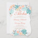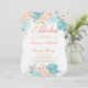Aloha! Venha para o paraíso para este convite para chás tropicais com laranja, coral, turquesa, e flores tropicais azuis e folhagem. Volta do ataque.