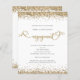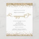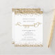 Um valor para o alternativo do ORÇAMENTO em tamanho menor de 4,5 x 5,6" de semirbrilho de 110 lbs, que é de espessura semelhante a um cartão postal (no entanto, não é adequado para uso como cartão postal). POR FAVOR, OBSERVE QUE HÁ UM convite por folha. Convidado para Noivado de Script de Coração Dourado Glitter. As bordas de confete de falso ouro elegantes estão no topo e no fundo e também no verso. O noivado é definido em uma escrita elegante com batidas românticas do coração em qualquer extremidade. Personalize facilmente o resto do texto para você.