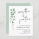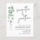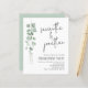 Há duas opções de papel a escolher para esse tamanho (4,5 x 5,6") na faixa de Orçamento. Para este produto, eu recomendaria o semibrilho, que é um estoque de cartão de 110 gsm, semelhante em espessura a um cartão postal. A opção Satin é um papel muito mais fino, 80gsm. O padrão é definido como semirbrilho. POR FAVOR, NOTE que existe UM por folha. Convite de Noivado de Script Eucalyptus de Orçamento. Um estilo botânico minimalista com um galho elegante de folhas de cor d'água eucalipto correndo pelo lado esquerdo e a tipografia moderna na moda.
