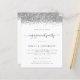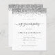Um valor para o alternativo do ORÇAMENTO em tamanho menor de 4,5 x 5,6" de semirbrilho de 110 lbs, que é de espessura semelhante a um cartão postal (no entanto, não é adequado para uso como cartão postal). POR FAVOR, OBSERVE QUE HÁ UM convite por folha. Convite para Festa de noivado de Script de Glitter do Orçamento Silver. Estilo de vidro com uma borda de falso brilho no topo de cada lado, e a Festa de noivado está em um script de estilo de escrita manual. Personalize facilmente o texto para seus próprios detalhes. Você também pode alterar as cores do texto e do plano de fundo por meio da opção personalizar mais, se desejar.