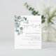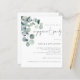 Convite para Noivado Eucalyptus com Aquarela Orçamental. Um valor para o alternativo do ORÇAMENTO em tamanho menor de 4,5 x 5,6" de semirbrilho de 110 lbs, que é de espessura semelhante a um cartão postal (no entanto, não é adequado para uso como cartão postal). POR FAVOR, OBSERVE QUE HÁ UM convite por folha estilo botânico minimalista, com verde-aquarela no canto superior esquerdo e texto à direita. Um script manuscrito definido para a Festa de noivado e o resto do texto que você pode personalizar facilmente.
