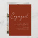 terracotta, simples design de inscrição e uma imagem personalizada. Você pode personalizar o texto, a imagem e os detalhes de cor neste modelo de convite de festa de noivado.
