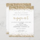 Um valor para o alternativo do ORÇAMENTO em tamanho menor de 4,5 x 5,6" de semirbrilho de 110 lbs, que é de espessura semelhante a um cartão postal (no entanto, não é adequado para uso como cartão postal). POR FAVOR, OBSERVE QUE HÁ UM convite por folha. Convite Dourado para Noivado de Borda de Glitter. As bordas de confete de falso ouro elegantes estão no topo e no fundo e também no verso. O noivado é definido num estilo moderno de escrita manual. Personalize facilmente o resto do texto para você.