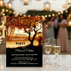 Convite para festas de noivado elegante com uma colorida árvore de outono e uma lanterna festiva com vista a um lago romântico. O verso mostra um design de estriado com gradiente dourado e arrojado.