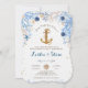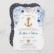 Ahoy! São casandos! Uma âncora coberta de ouro cercada por um pedaço de coral submarino azul, ouro, areia, marinho e chalé com estrelas-do-mar e conchas, o convite perfeito para o casal náutico.